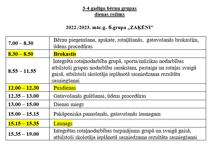 MK Nr. 890. (17.09.2013.g.) Higiēnas prasības bērnu uzraudzības pakalpojuma sniedzējiem un izglītības iestādēm, kas īsteno pirmsskolas izglītības programmu, punkts 11: “Starp ēdienreizēm ievēro trīs līdz četru stundu intervālu“.